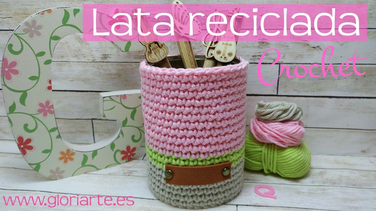 Funda de crochet para lata reciclada